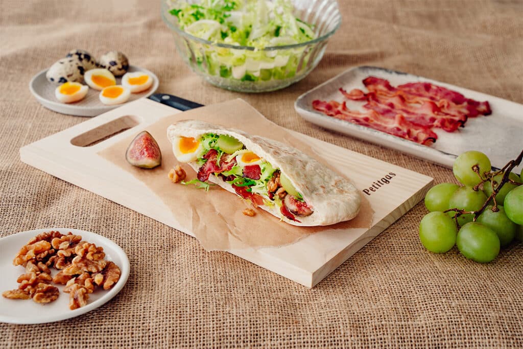 Pain pita à la poitrine fumée, figues et raisins.