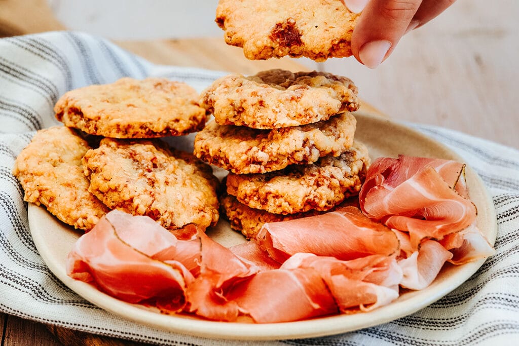 À la sortie du four, garnissez chaque sablé des restes du jambon de Vendée IGP Petitgas.